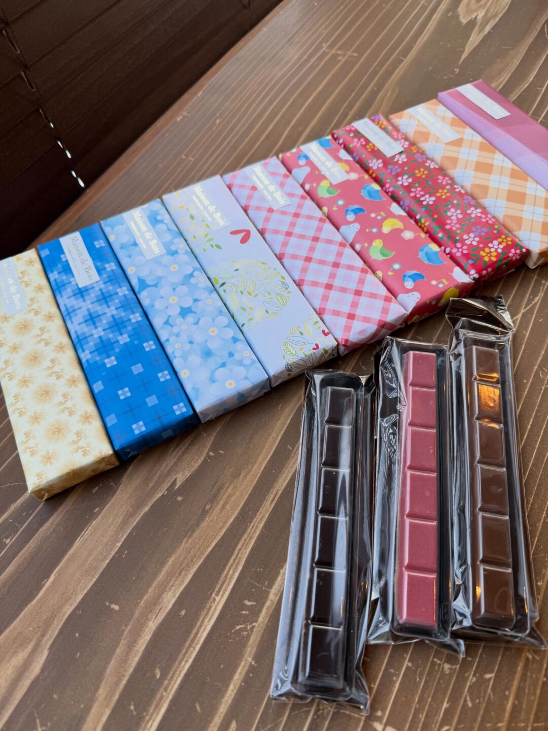 ダーク、ミルク、苺、3種のチョコタブレット。